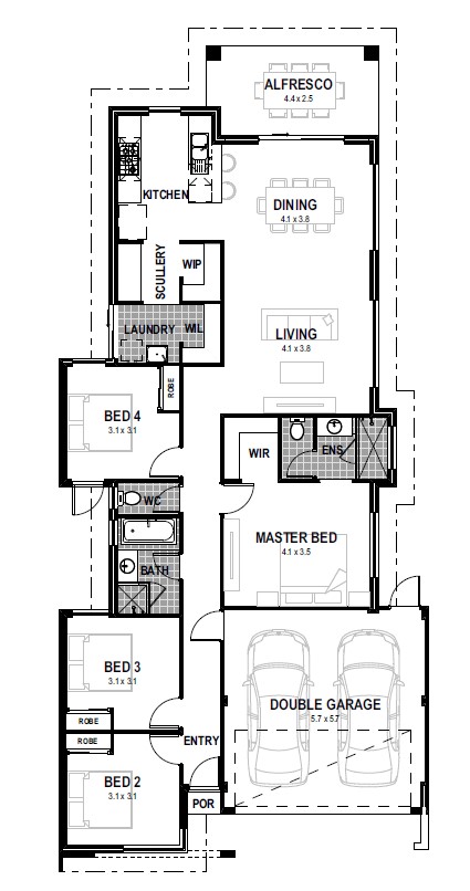But what sets the Hermosa apart is its open space design, which brings the family together in one shared space. The kitchen boasts an island bench and connects to a scullery, walk-in laundry, and walk-in pantry. This makes meal prep and cleanup a breeze, allowing you to focus on the important things – like spending quality time with your loved ones.