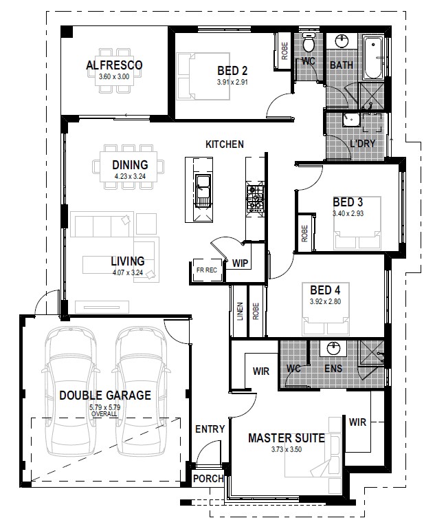 Welcome to the Monterey – the perfect home for first-home buyers who are looking for a modern and spacious design. With a frontage of 15m, this home offers 4 bedrooms, 2 bathrooms, and a double-car garage – perfect for young families or those starting out in the property market.