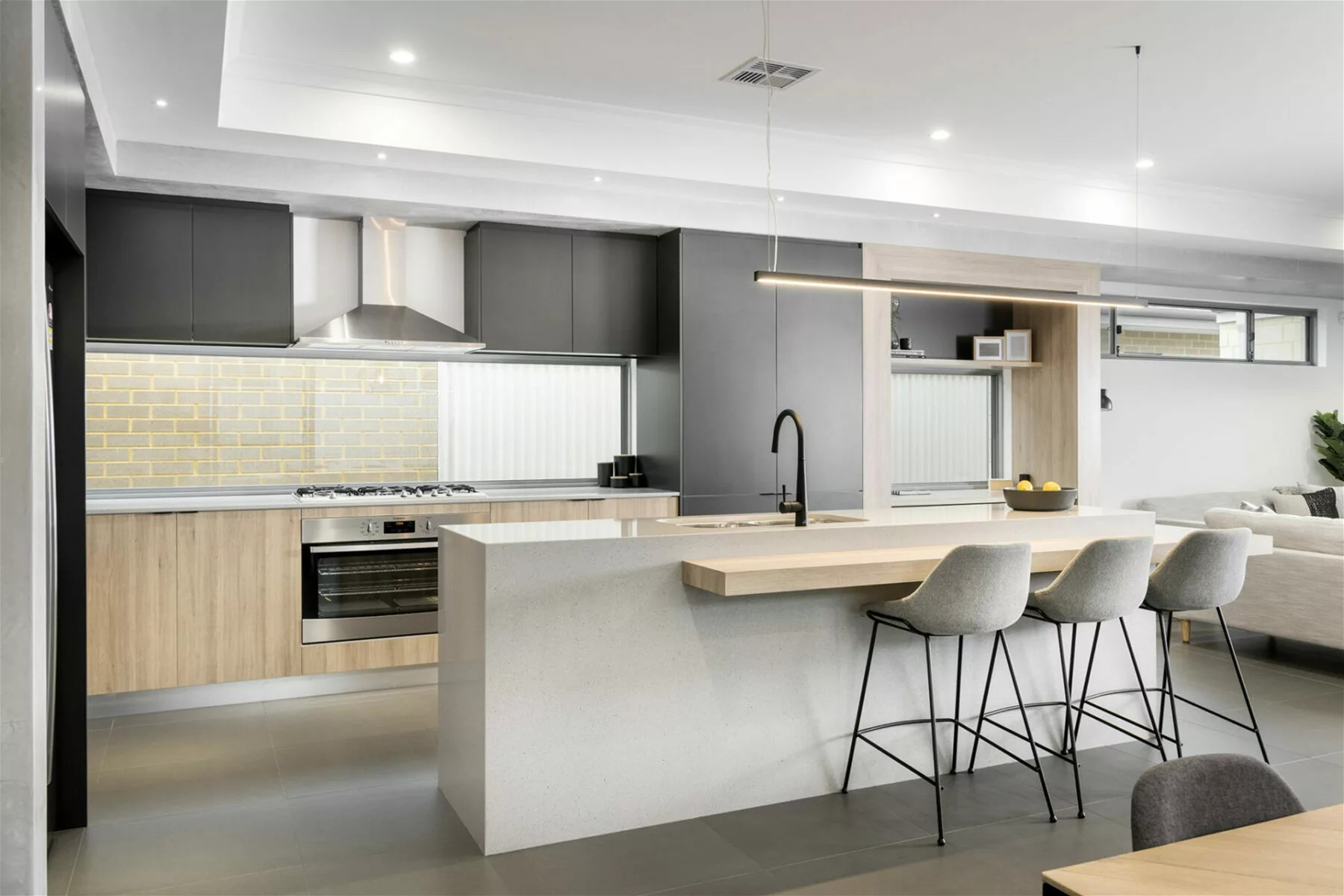 900mm Cooktop and oven with integrated rangehood and overhead cabinetry
